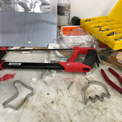 I love working at the model shop, because the instructor cracked jokes all the time. To make a cookie-cutter, I had to check out a tool to insert rivets to close off the cookie-cutter. I used a Whitney metal punch tool make a hole for the rivet. When I put the rivets in, I messed up. The next tool I had to check out was a hacksaw.